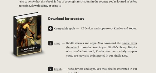 Conan Stories – Robert E. Howard – Download for ereaders –> https://standardebooks.org/ebooks/robert-e-howard/conan-stories