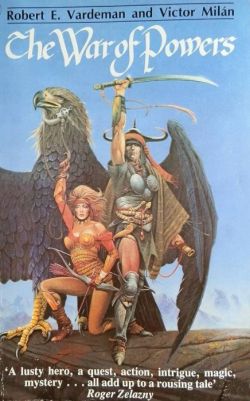 Έχοντας εγκαταλείψει τη σειρά Cenotaph Road του Vardeman, είπα να δοκιμάσω κάτι άλλο που έχει γράψει (αν και μαζί με συνεργάτη), μήπως αυτό μού αρέσει περισσότερο. Και η αλήθεια είναι πως το War of Powers μού αρέσει περισσότερο, αν και κάποια πράγματα μού φαίνονται από κακόγουστα ώς αστεία. Είναι κι αυτό πολύ ευφάνταστο όπως το Cenotaph Road· δεν μπορείς να το αμφισβητήσεις. Αλλά περιλαμβάνει και στοιχεία που μοιάζει να έχουν βγει κατευθείαν από το περιοδικό Heavy Metal και να είναι εκεί για να λένε κάποιοι ότι η ηρωική φαντασία είναι σεξιστική. Ακόμα κι εγώ, που γενικά δεν συμφωνώ με τέτοιες ακρότητες, ορισμένα πράγματα τα θεώρησα κάπως. Αν και οι γυναικείοι χαρακτήρες είναι δυναμικοί και δραστήριοι, περιγράφονται συνεχώς τα «προσόντα» τους: λίγο στήθος, λίγο μπούτι, λίγο... (Εε, όχι δεν είμαι ο χασάπης, δεν πουλάω κρέας.) Και όλες τους, φυσικά, είναι «θεές» – νορμάλ γυναίκες απαγορεύεται να εμφανιστούν, μάλλον – πολύ σεξουαλικές, και πρόθυμες να κάνουν τούμπες με τον βασικό ήρωα, ο οποίος είναι ένας βάρβαρος (περίπου βάρβαρος) κούριερ που μεταφέρει πράγματα επάνω σε έλκηθρο που το σέρνουν γιγάντια σκυλιά. (Παρεμπιπτόντως, δεν υπάρχουν άλογα στον κόσμο· γιγάντια σκυλιά καβαλάνε – όταν δεν καβαλάνε αρκούδες ή πτηνά, ή οτιδήποτε άλλο.) Η πλοκή είναι στα όρια του απλοϊκού, αλλά καταφέρνει να έχει κάποιο ενδιαφέρον. Οι διάλογοι έχουν πλάκα – απλά και μόνο. Η μαγεία πλησιάζει να είναι σχεδόν σαν του D&D, αν και λιγότερο ό,τι-νάναι ώστε να μπορείς να την πάρεις (λιγάκι) σοβαρά. Ο φανταστικός κόσμος, αν και ευφάνταστος, έχει ένα τελείως κλισέ υπόβαθρο και ιστορικό, με θεούς, δαίμονες, και φιδανθρώπους. Δεν ξέρω τι με έκανε να μην το παρατήσω. Ίσως επειδή το όλο θέμα έχει πλάκα, και είναι όντως λίγο καλύτερο από άποψη πλοκής από το Cenotaph Road – ή, τουλάχιστον, έτσι μου φάνηκε. Παρότι κι εδώ οι βασικοί χαρακτήρες (ο καυλιάρης βάρβαρος-κούριερ που λέγαμε και μια τρομερά σεξουαλική πολεμίστρια-πριγκίπισσα-μάγισσα από την Πόλη των Ουρανών) συνεχώς περνάνε από επικίνδυνες καταστάσεις, δεν μου έδωσε εκείνη την εντύπωση ότι απλά είναι η μία σκηνή δράσης/μάχης μετά την άλλη. Ίσως η ροή της αφήγησης να έρχεται πιο φυσικά. Τελικά, αποφάσισα να προχωρήσω και στο δεύτερο και τελευταίο βιβλίο της ιστορίας· αλλά οι εντυπώσεις μου γι’αυτό θα γραφτούν τον άλλο χρόνο μάλλον. Δεν το έχω ακόμα τελειώσει.